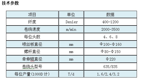 滌綸紡絲機(滌綸FDY工業絲紡牽聯合機)產品用途:用于生產滌綸全牽伸絲(FDY)產品之用,該絲主要用于吊裝帶、牽引帶、緊固帶、輸送帶土工織物、漁網、纜繩、工業縫紉線及橡膠等。